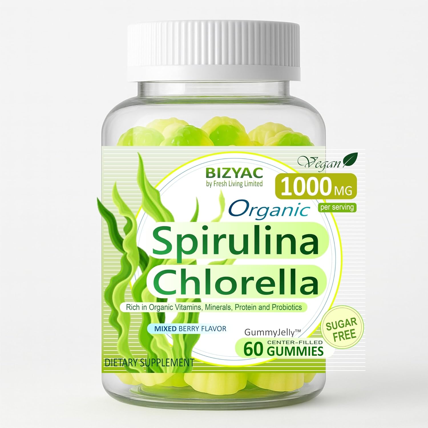 Organic Spirulina Chlorella Gummies, Nutrient-Dense Superfood Rich in Vegan Protein, Super Greens & Chlorophyll + Vitamin C & D3, Zinc, B12 for Natural Energy, Powerful Antioxidants, Sugar Free,60 Cts