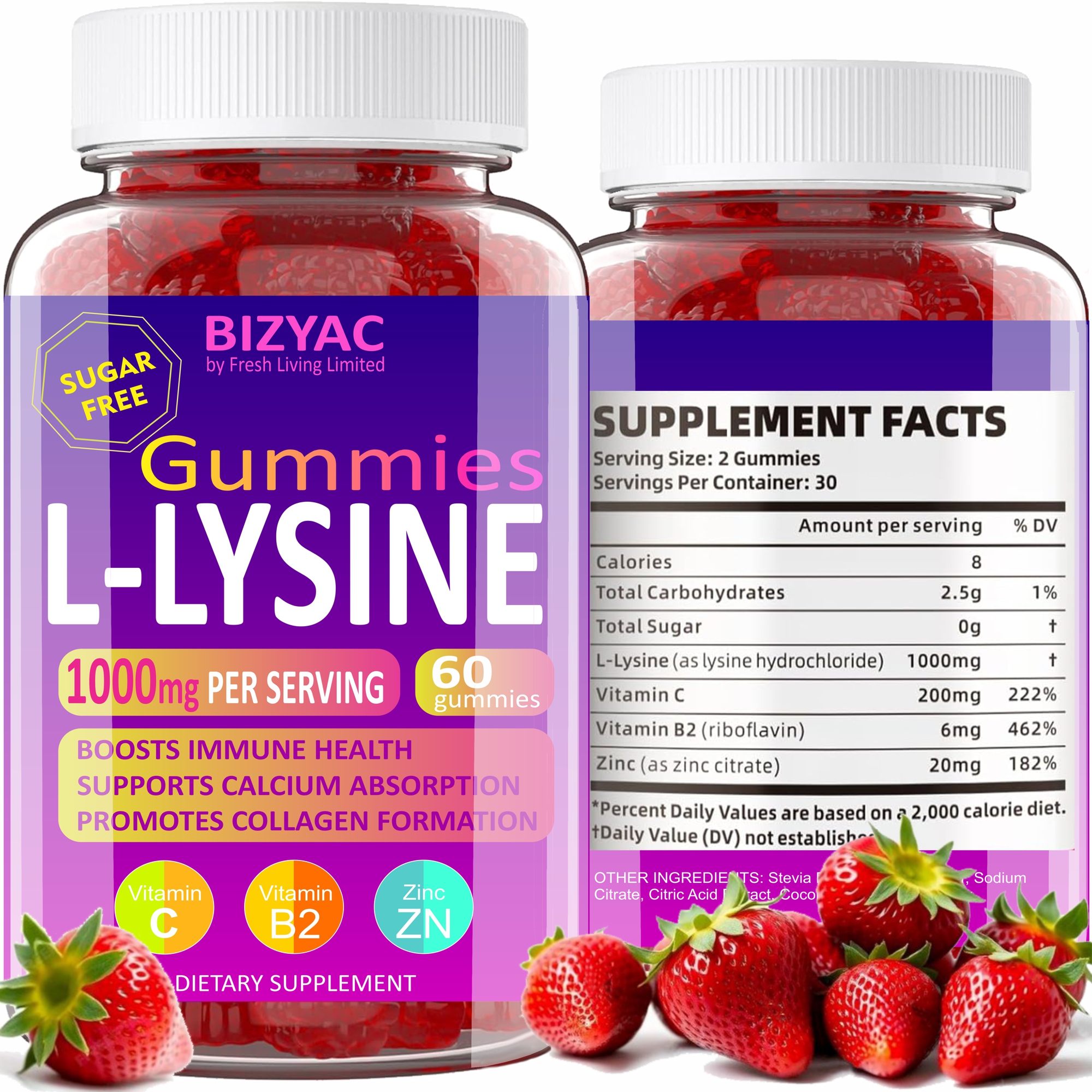 Delicious Sugar-Free Berry Flavor – Enjoy the taste of naturally sweetened, tangy berries in every bite. These L-Lysine gummies for adults are sugar-free and contain no artificial colors, flavors, or added sugars—a great chewable lysine choice for health-conscious individuals of all ages.