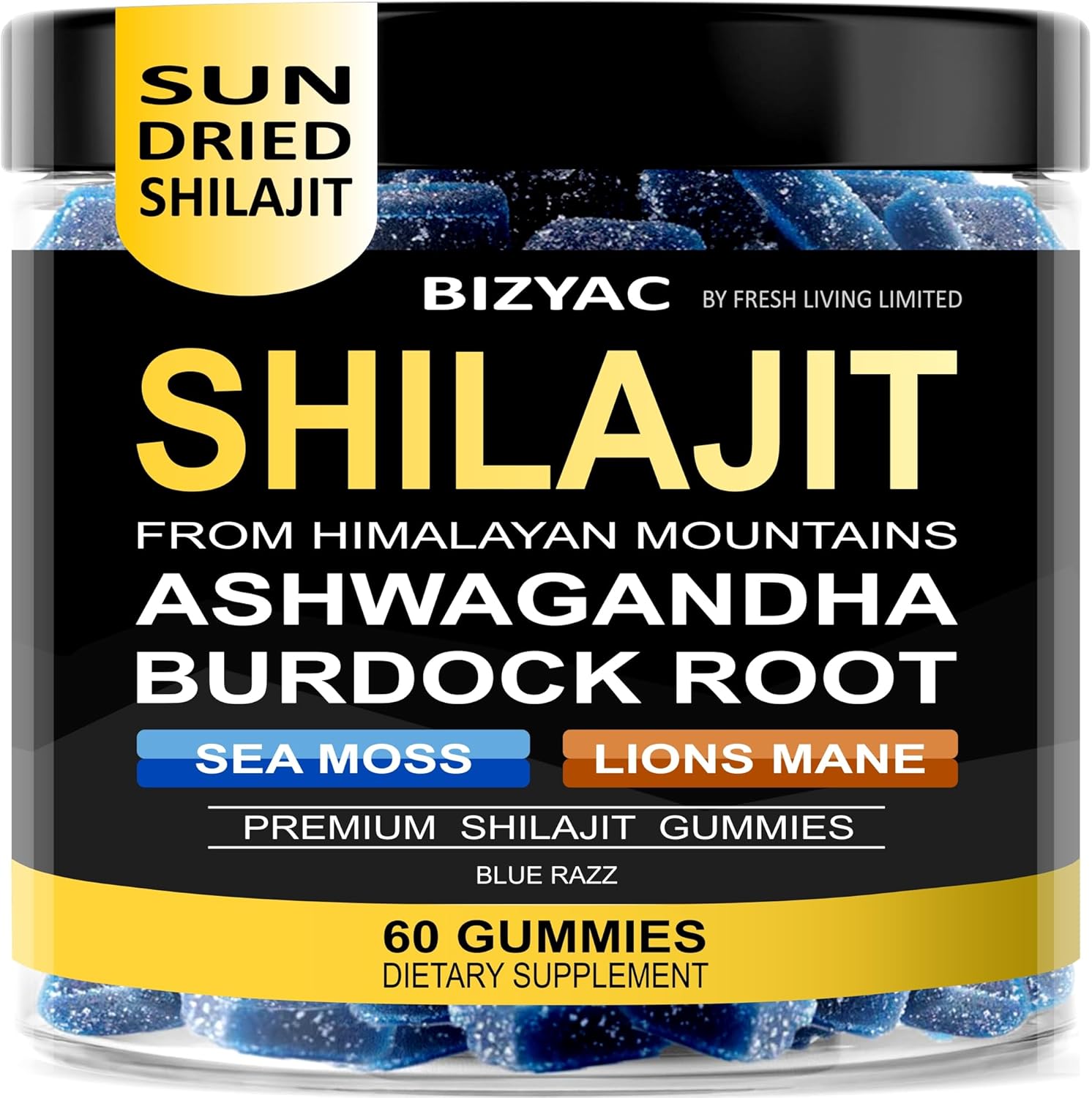 Shilajit Gummies with Sea Moss & Ashwagandha, Burdock Root & Lion’s Mane